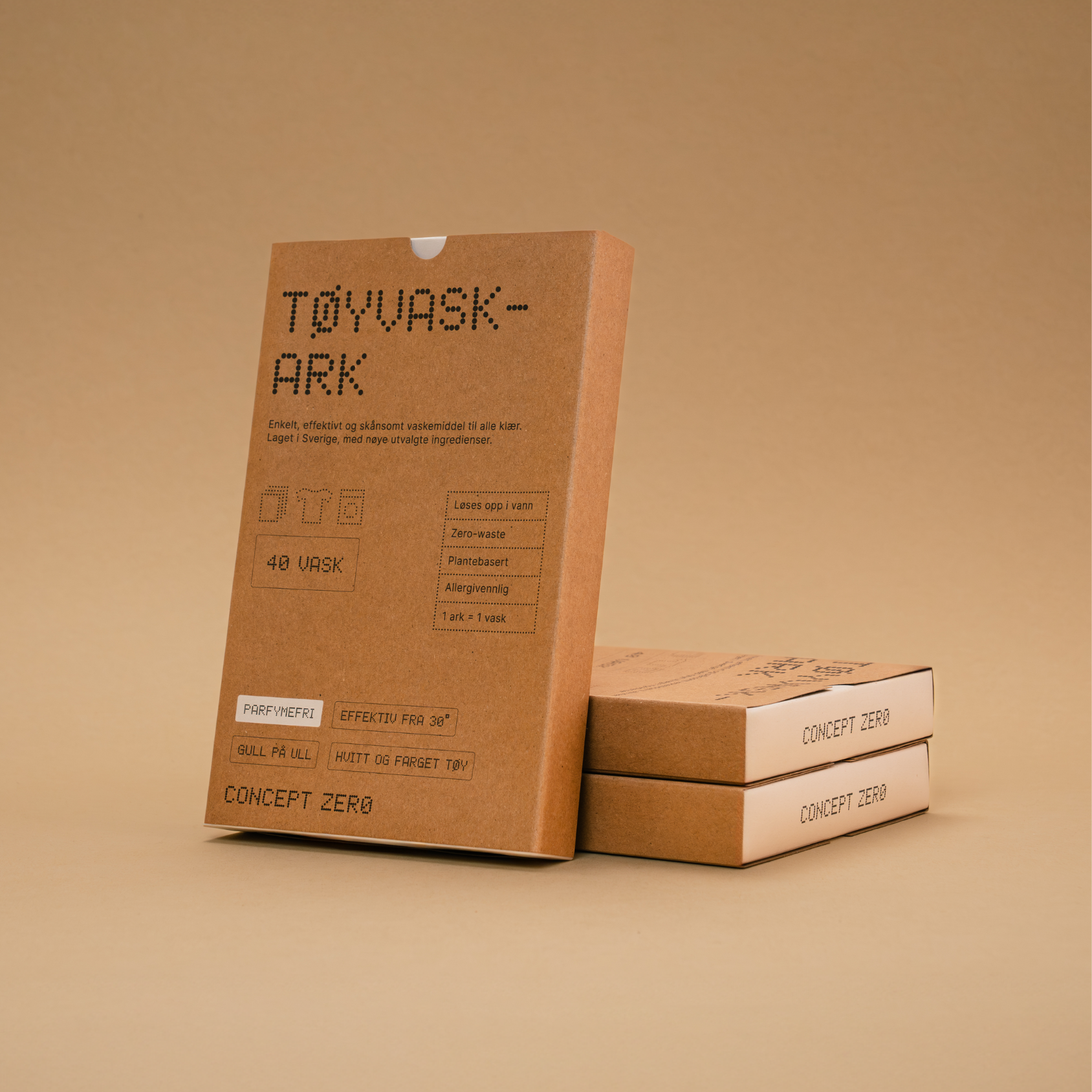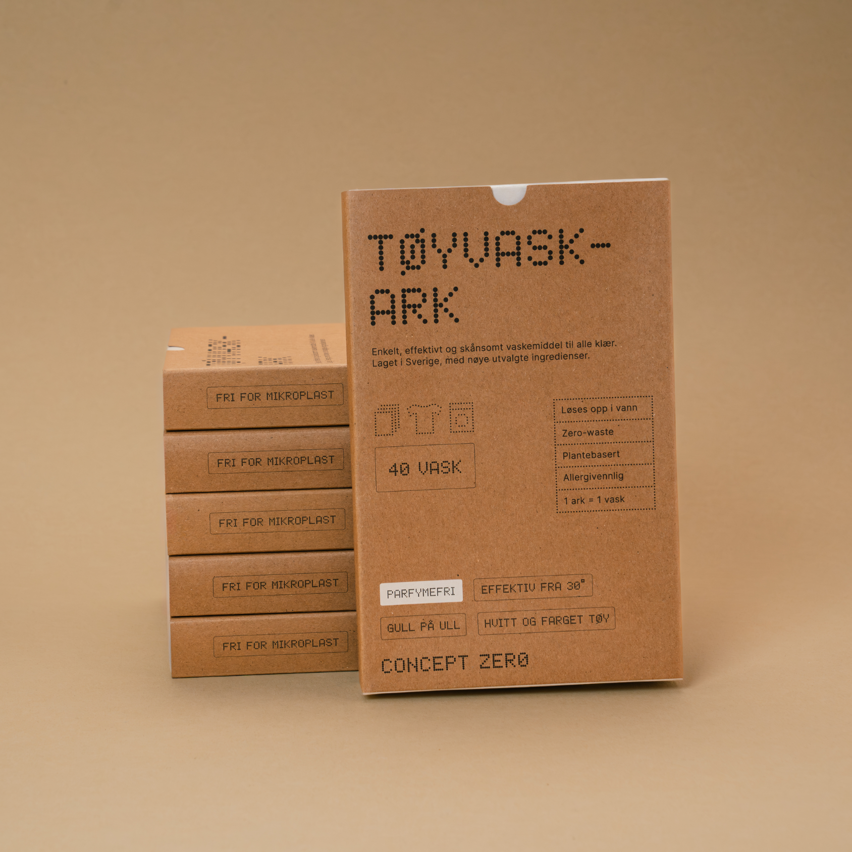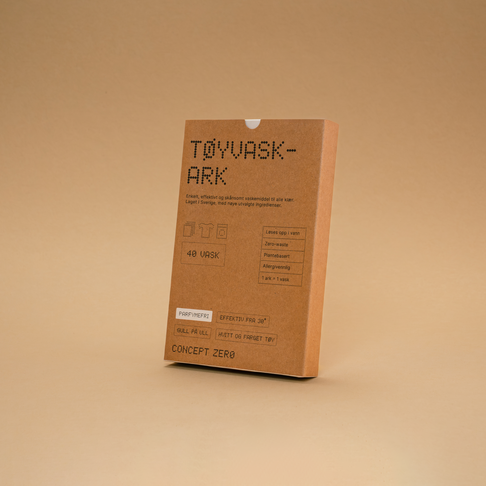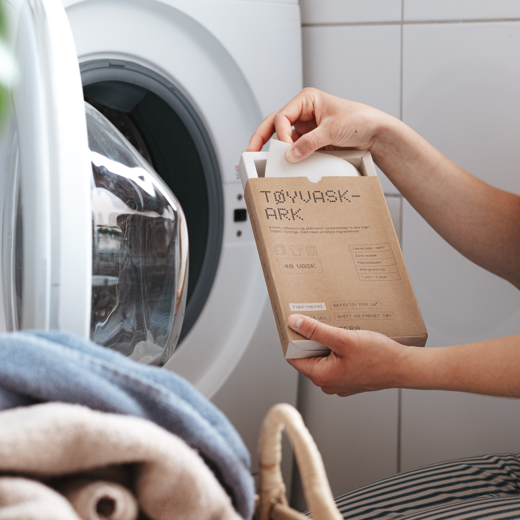 Tøyvask-ark er en ny type vaskemiddel til klær, som inneholder plantebaserte og effektive ingredienser. Det er kort sagt et vaskeark som løses opp i vann. For å bruke vaskemiddelet legger du et ark inn i maskinen sammen med klærne, så kan du starte maskinen. Og vips! Nå kan du ta klesvasken uten søl, og med renere samvittighet.